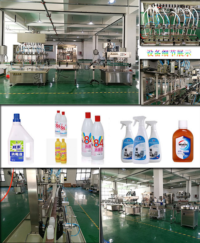 南京星火全自動防腐蝕液體灌裝設備車間展示及防腐蝕液體自動灌裝機灌裝樣品