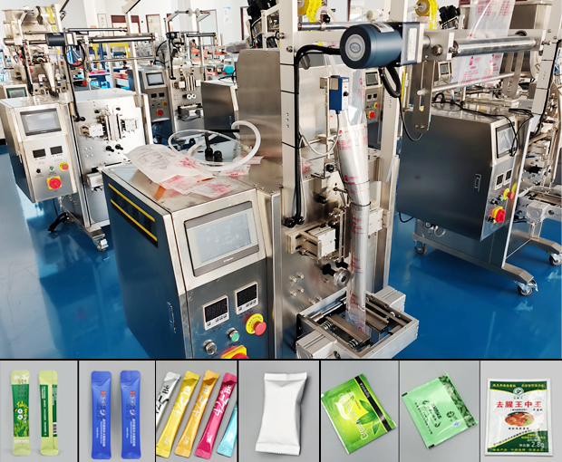 醬油醋小包液體調料包裝機是由星火智能設備推出的一款小立式液體包裝機械,專門針對3-50g的小包裝液體進行自動包裝,它可以把醬油醋、酵素、調料包都按規定的重量一個個的包裝在小袋子里。而且,醬油醋小包液體調料包裝機還能自動將卷膜制成一個個小袋子,邊制袋邊包裝,同時進行,哪個也不耽誤。經過制袋包裝之后,醬油醋小包液體調料包裝機的橫封機構通過兩邊金屬面板熱壓力,形成袋子形狀并進行封切,短短的幾秒鐘一個完整的液體調料包就迅速完成了。