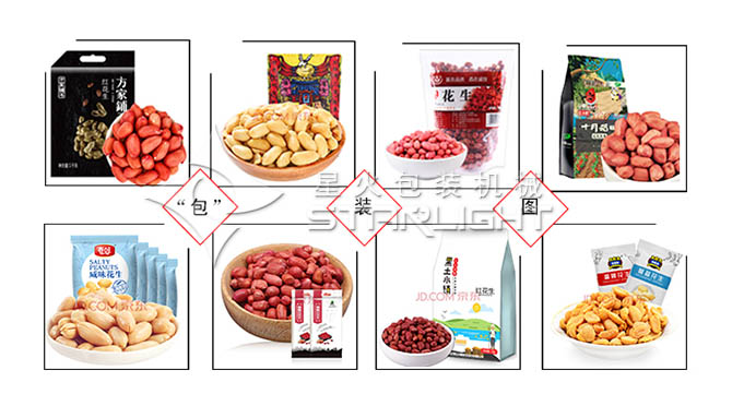 全自動花生包裝機/咸味花生包裝機廣泛適用于花生米、花生碎、怪味花生、酒鬼花生、香酥花生、咸味花生、蠶豆、青豆、咖啡豆、大米、紅豆、薏米、冰糖等顆粒類產品的包裝。