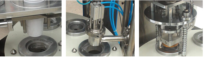 3.該灌裝生產線具有六個同步注脂灌裝頭,油脂可均勻地被擠壓灌裝到容器里。