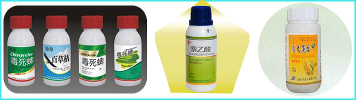 首先,將農(nóng)藥裝進全自動農(nóng)藥灌裝機中,然后有傳送帶將農(nóng)藥的空瓶運輸至灌裝處,然后由全自動農(nóng)藥灌裝機進行灌裝,緊接著傳送帶運輸自動旋蓋機處,由自動旋蓋機對農(nóng)藥瓶進行上蓋、鎖蓋工序,然后由圓瓶貼標機對藥瓶進行貼標,然后到成品。