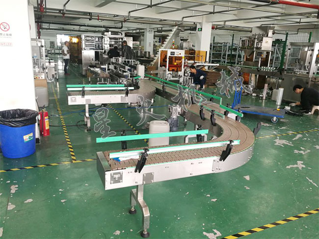 3、鏈條輸送適用于多種瓶型灌裝,傳送鏈條采用四氟滾輪,走瓶更穩,減少摩擦,更加耐磨,耐用,延長了設備使用壽命。