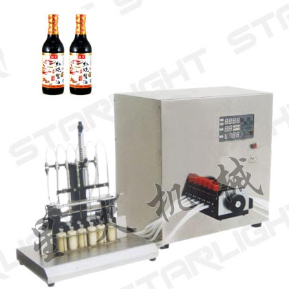 產品關鍵詞:瓶裝醬油醋灌裝機、6頭半自動液體灌裝機