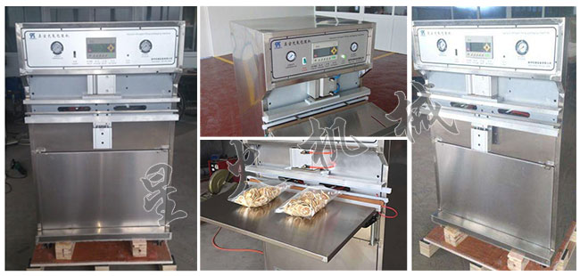 方便式真空包裝機又叫充氮真空包裝機,是星火公司引進國外先進技術,融合客戶要求而研發生產的新一代產品,采用國際最先進包裝技術,集抽真空、制氮氣、充氮氣、熱封為一體的半自動多功能包裝機械,工作程序由微機系統自動控制,可根據不同的包裝材料和容積單獨調節各工作環節時間,也可單獨使用其中某一單獨環節。整機由除油除水空氣過濾系統,空氣分離制氮系統,抽真空系統,儲氣供氣系統,熱封系統,微機控制系統,升降式工作室及機架、機殼組成。本機可與其它設備及生產機配套使用。適用于各種塑料復合膜和塑料鋁箔復合膜的各種包裝,封液體、半流體、固體粒狀、粉狀、糊狀的食品、鮮果、蔬菜、大米、鮮花、醫藥原料藥、名貴字書、電子原器件以及各種防蛀、防腐、防潮、防霉變、防氧化物品進行真空包裝或真空充氮包裝,使其延長保質期。