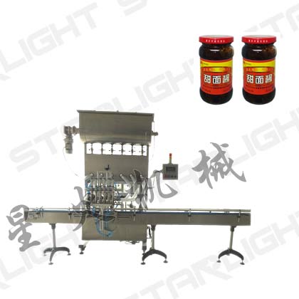 產(chǎn)品關(guān)鍵詞:甜面醬灌裝機,六頭顆粒醬類灌裝機