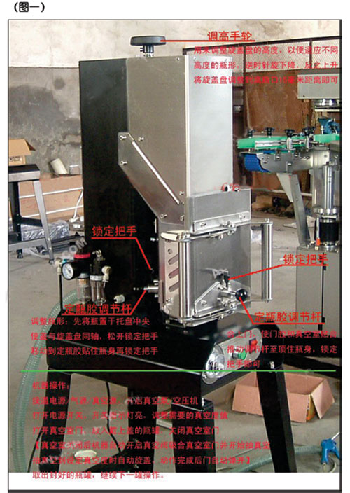 | 定瓶件調整不適當 (瓶身存在打轉情況) | 應當將瓶口和旋蓋盤對其同軸,使定瓶硅膠都接觸瓶身,門上定瓶膠在門膠貼平在真空室時再推至與瓶身接觸。調整后需鎖定。 |